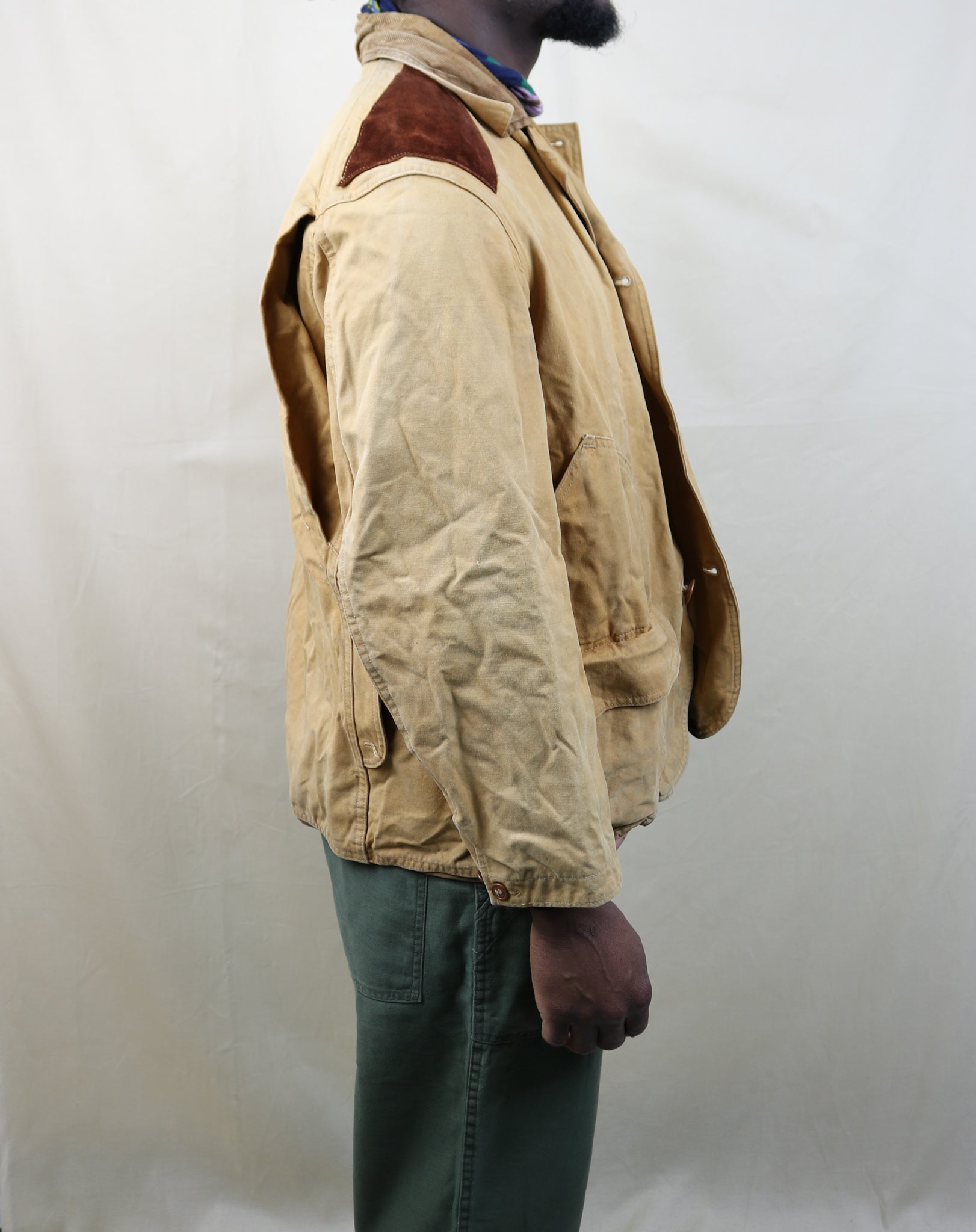 50s Hunting Jacket overall good condition some wear.One front button is missing as well was a small tear on the inside pouch this does not affect the look of the jacket