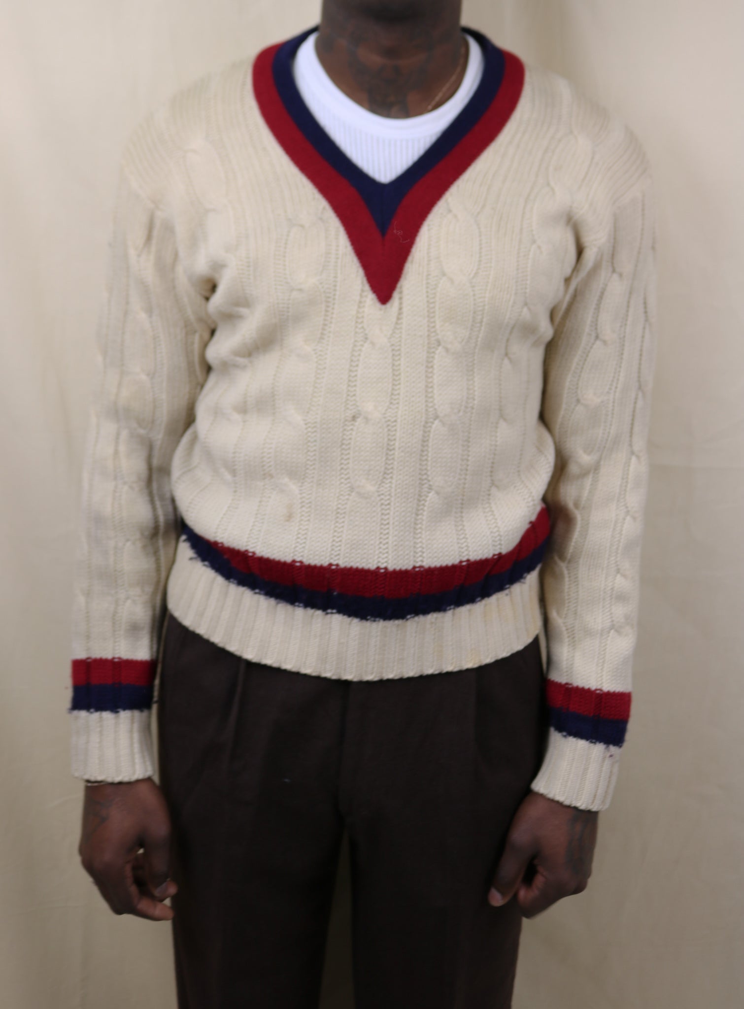 Vintage 1960s 70s 100% Wool Cable Knit Tennis